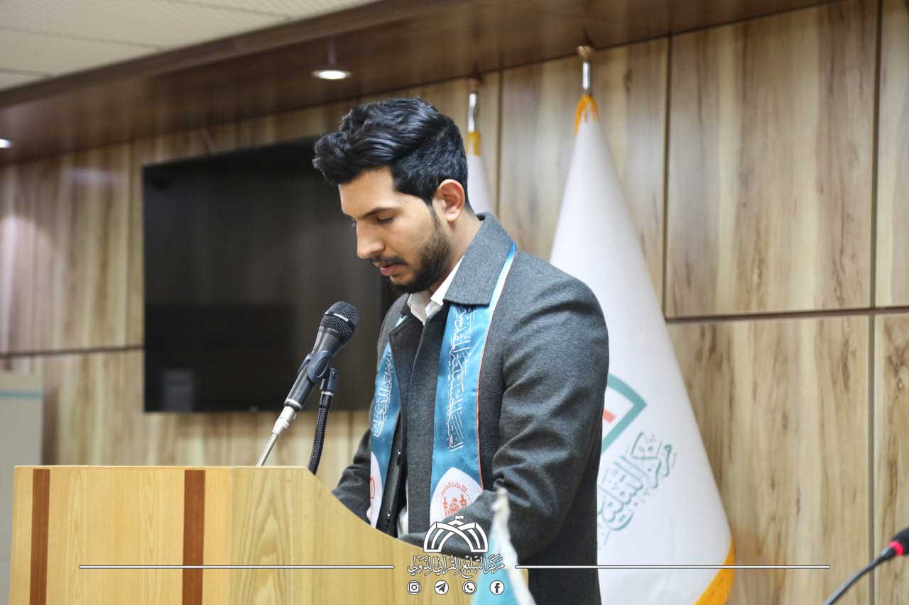 وخلال كلمته ضمن حفل الختام، بيّن مدير مركز التبليغ القرآني الدولي الأستاذ منتظر المنصوري أن: "النجاح في هذه الدورة لا يتوقف عند إنهاء البرنامج التدريبي، بل يبدأ مما بعده فنحن لا نحتفل باختتام دورة فقط بل بنقلة نوعية في أساليب تقديم رسالة المؤسسات القرآنية عبر الوسائل الإعلامية الحديثة"، مشيراً إلى أن: "المشاركين باتوا قادرين على مواجهة التحديات الإعلامية بثقة وكفاءة، وتحمّل المسؤولية في نقل الرسالة القرآنية بما يليق بها".