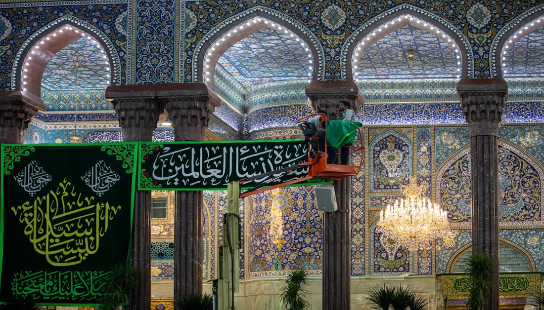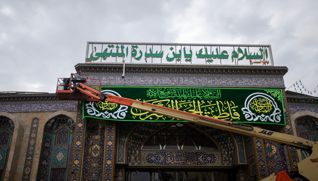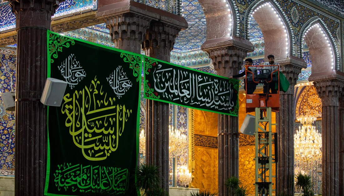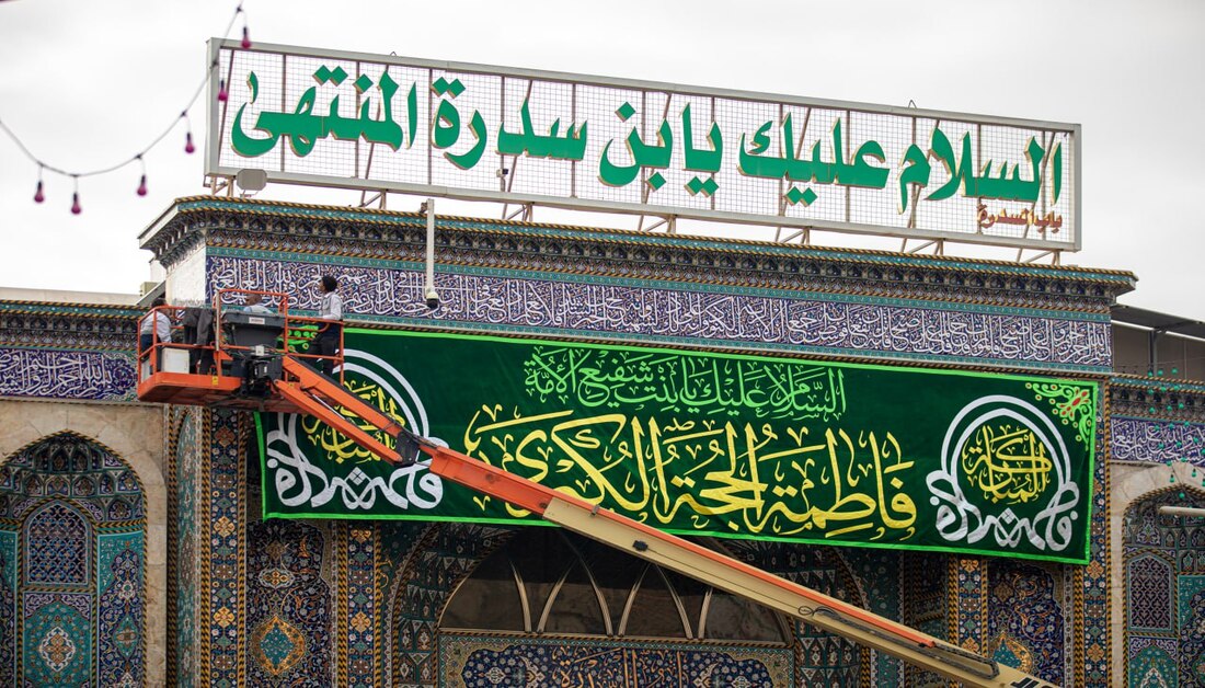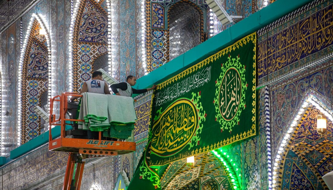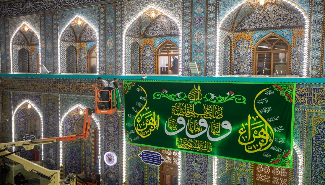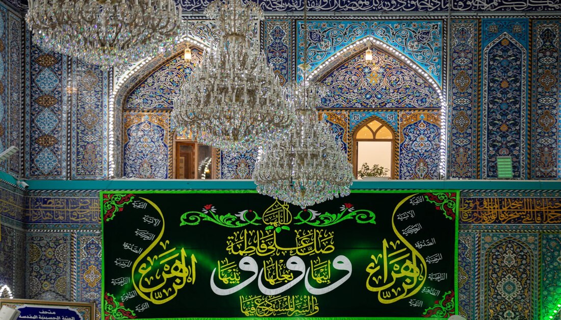 بالصور: الصحن الحسيني يتزين بلوحات مطرزة احتفاء بذكرى ولادة السيدة الزهراء (ع)