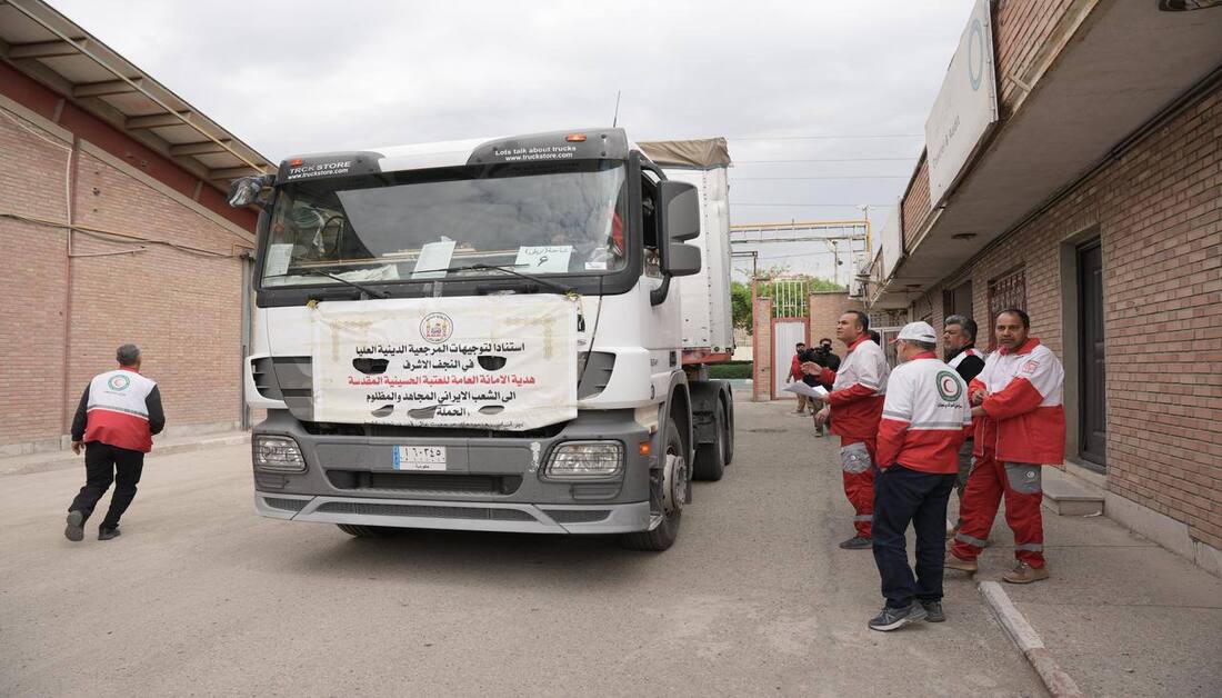 هدية من العتبة الحسينية.. شاهد بالصور: انطلاق أول قافلة لإغاثة الشعب الإيراني اس...