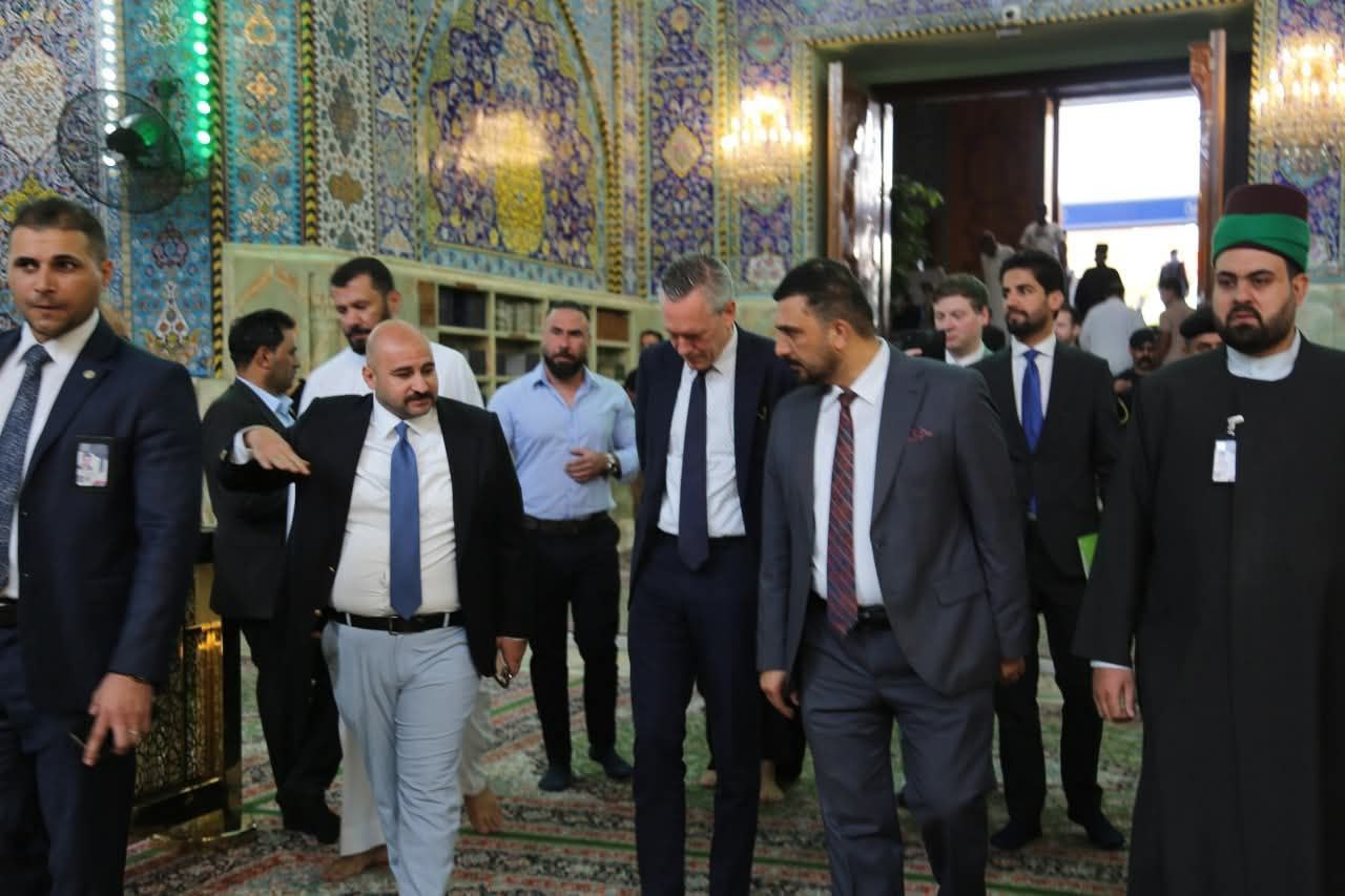 The Chargé d’Affaires of the Embassy of the Kingdom of the Netherlands in Iraq, Mr. Christoph Prommersberger, visited the Imam Hussain Holy Shrine in a visit that carried cultural and economic dimensions. The purpose of the visit was to learn more closely about the story of Imam Hussain (peace be upon him) and to discuss ways to enhance bilateral cooperation between Iraq and the Netherlands in several vital sectors, especially agriculture, water resources, and infrastructure.