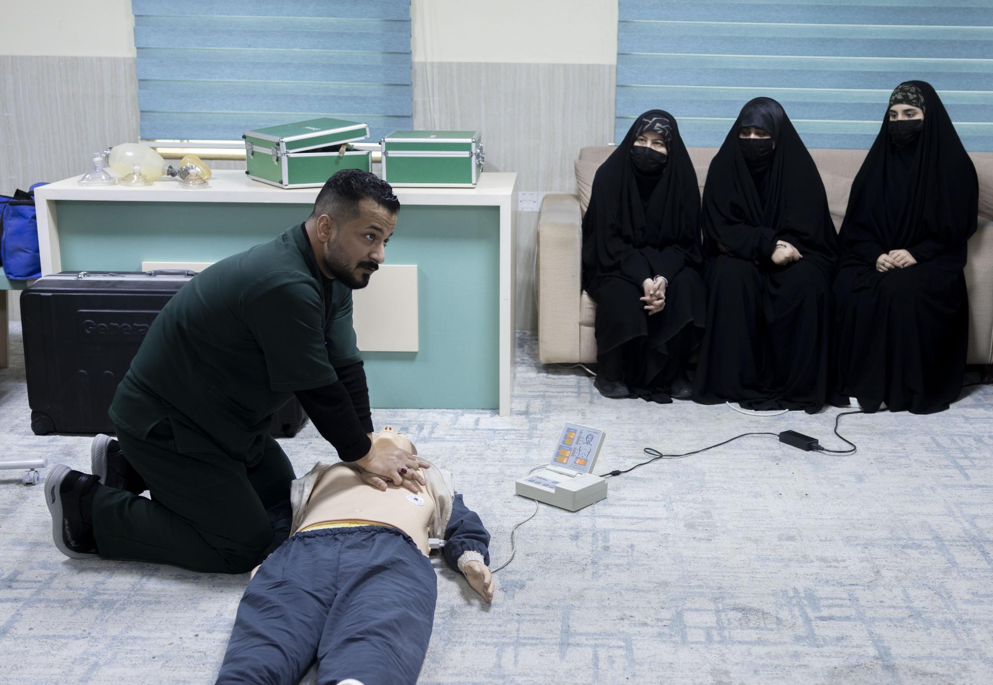 Course instructor Dr. Naji Al-Ussaili said that “the organization of the third training course dedicated to female nursing staff comes as a continuation of the program prepared to train medical and nursing personnel who will work at the Sayyid Jaafar Al-Hilli Center for Emergency Medical Services.”