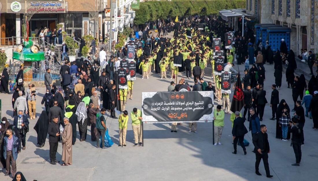 بالصور: بمشاركة أكثر من (2000) طالب.. مجموعة مدارس الوارث التابعة للعتبة الحسينية تنظم مسيرة لإحياء ذكرى استشهاد السيدة فاطمة الزهراء (ع)