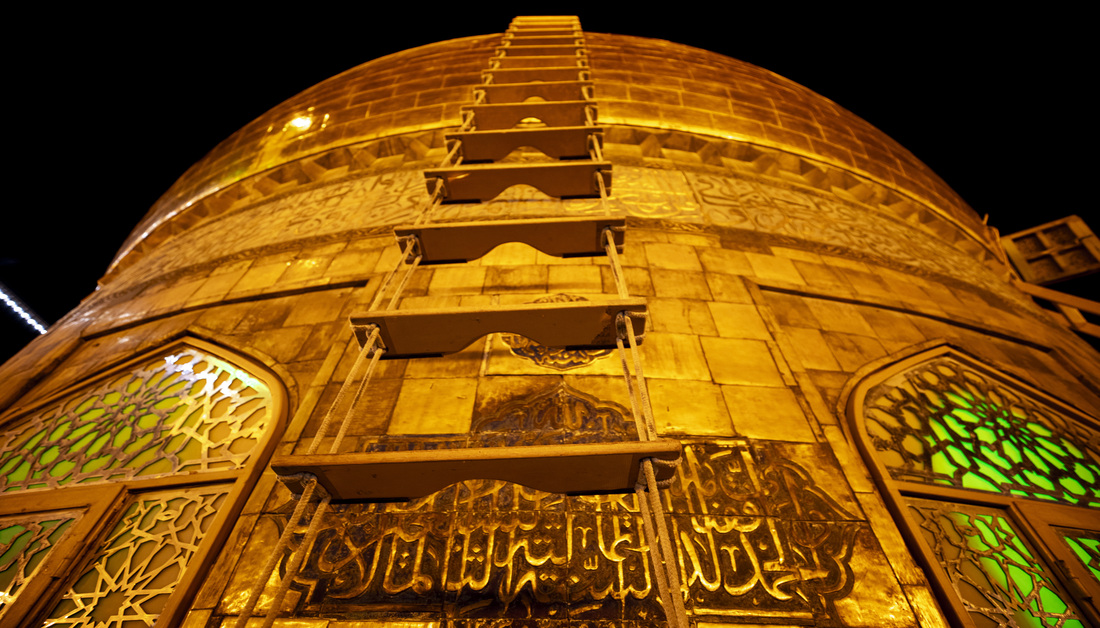 دائمی دیکھ بھال اور توجہ... حرم مقدس حسینی کے سادات خادمین نے امام حسین (ع) کے روضے کے گنبد کو غسل دیا