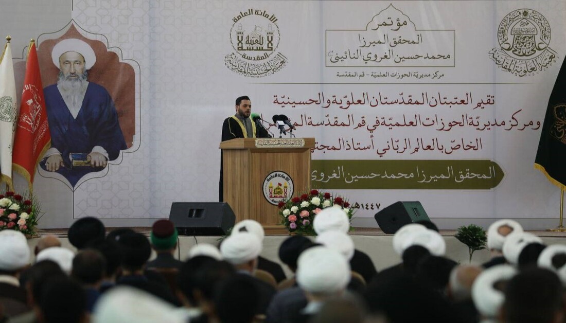 اعلیٰ دینی مرجعیت کے نمائندے کی موجودگی میں.. حرم مقدس حسینی نے صحنِ حسینی شریف کے اندر مرزا نائینی کانفرنس کا اختتام کیا