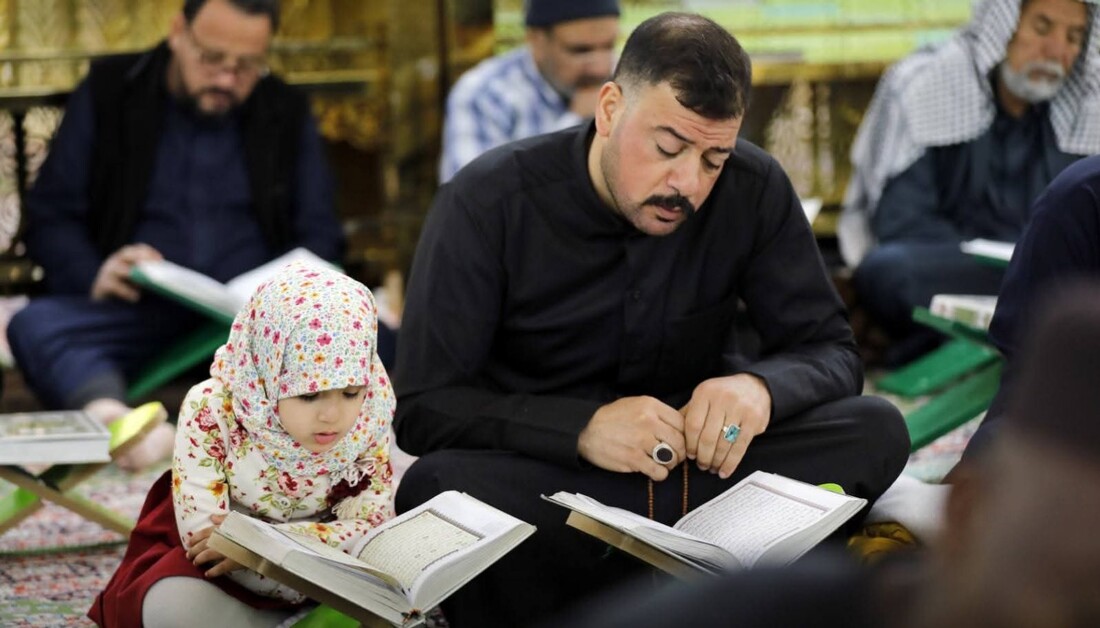 حرم مقدس حسینی کے صحن مطہر میں ایمانی ماحول کے درمیان مرکزی رمضان قرآنی ختم کی محفلیں جاری